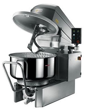Amasadora de spiral con artesa extraible específicamenteproyectada para los trabajos intensivos de las industrias panaderas. Sus peculiaridades son: estructura en acero de grueso espesor, dos potentes motores de doble velocidad, panel de mando electromecánico o digital con sonda de temperatura, protección artesa con rejillas en acero inoxidable. Opera con un efectivo sistema hidráulico de enganche y desganche del carro artesa y de subida y bajada. Maquina montada sobre ruedas. Capacidad de masa de la cuba es de 6 a 130 kg.